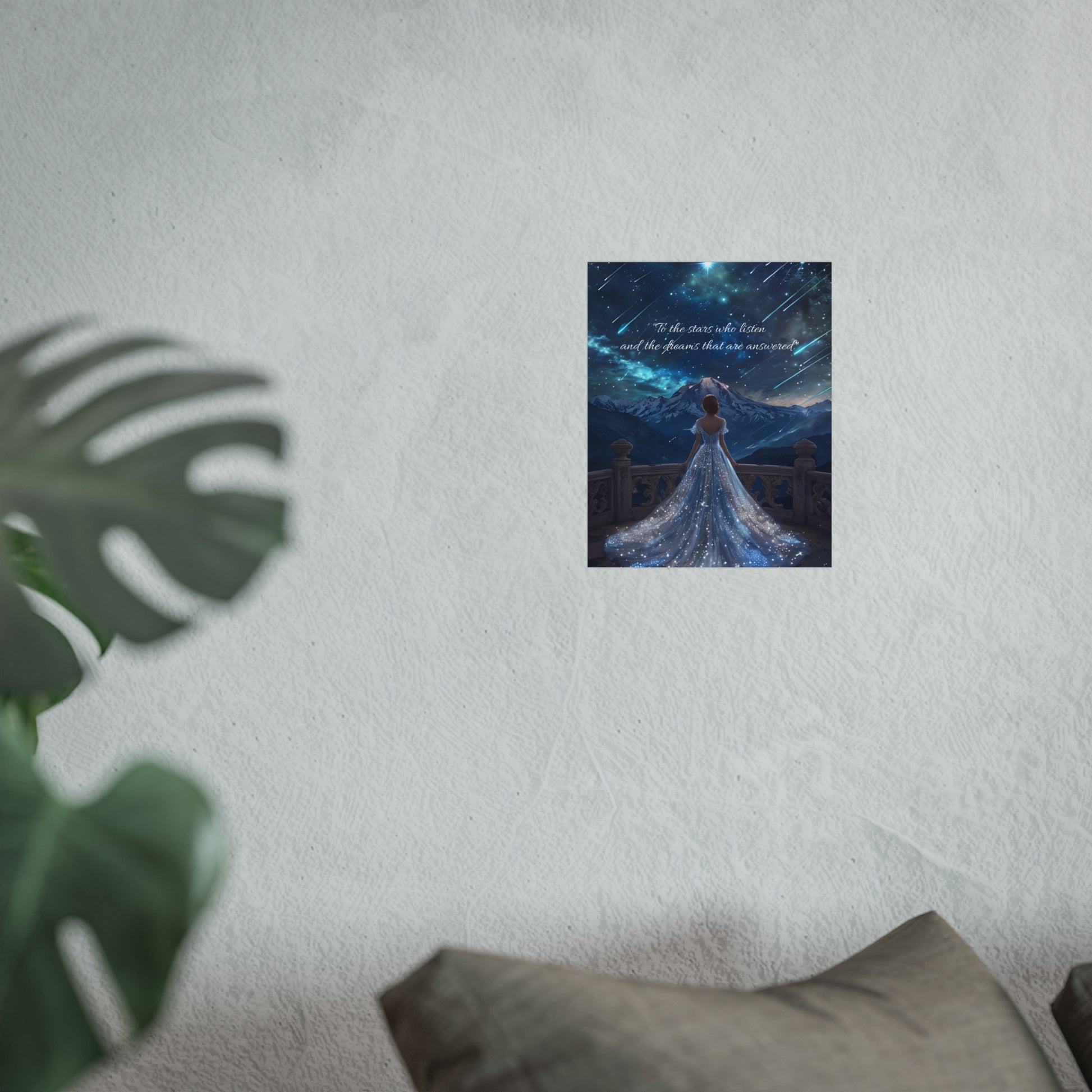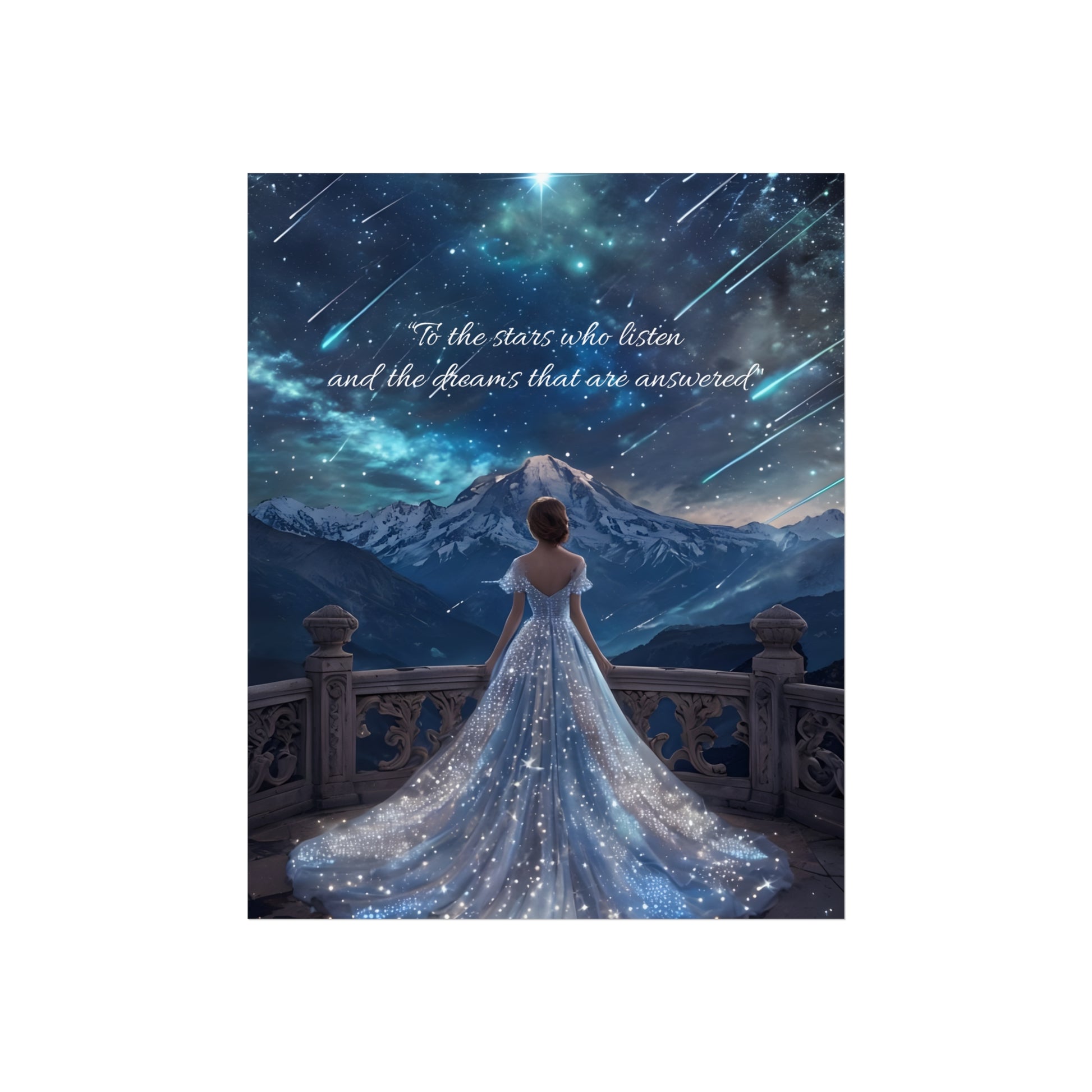 This unique digital ACOTAR fan art print features Feyre Archeron during Starfall, overlooking the glowing sky of the Night Court. Inspired by Sarah J. Maas' bestselling romantasy series, this fine art design captures one of the most iconic moments from the books—complete with the beloved quote: "To the stars who listen – and the dreams that are answered."🗡️📖✨