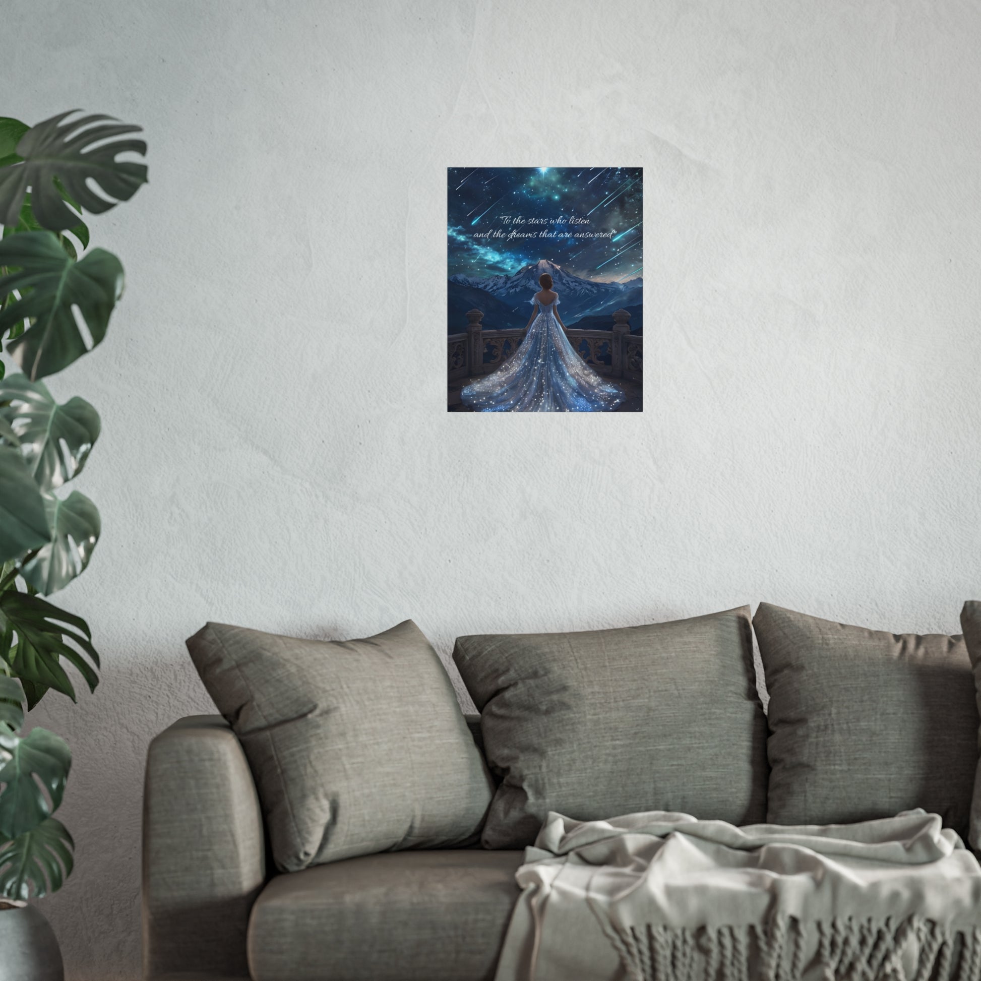 ACOTAR fan art print featuring Feyre on Starfall with the quote "To the stars who listen." A perfect romantasy gift for readers and book lovers🌌💫→